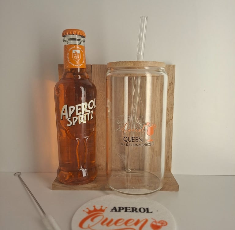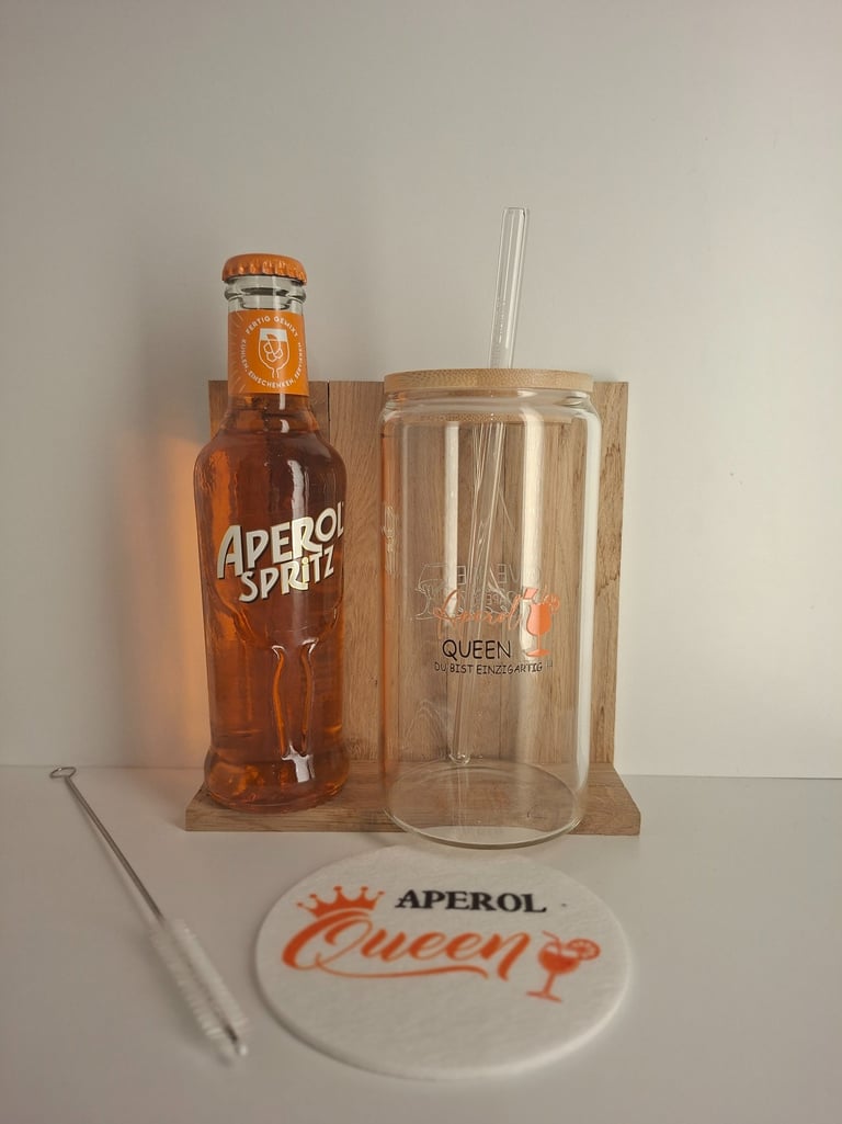 Aperol Geschenkset mit Aperol, Glas, Glasstrohhalm und Filz Untersetzer
